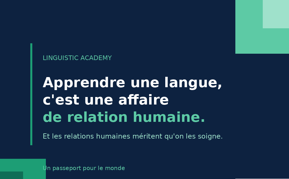 Chez Linguistic Academy, il n’y a pas de plateforme préformatée ou de fascicule standardisé. Nos formateurs, véritables coachs, prennent le temps de comprendre votre niveau et vos attentes.